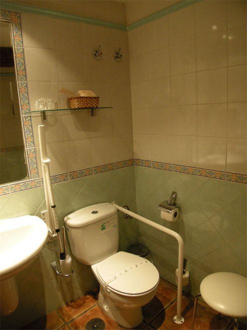 Habitación apta para minusválidos, consta de cama de matrimonio de 135 cm. Con la techumbre de madera original de la casa y un amplio baño completo, mesa de lectura y un bonito palanganero.